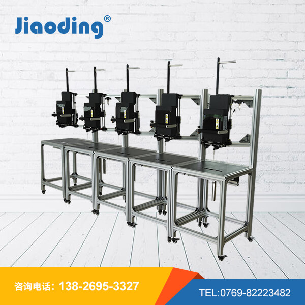 气动半自动双头:气缸驱动,机械式行程,稳定、准确、速度快,利用与夹具的配合,一次完成二个绑定位,有利于针对产品改善效率。